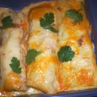 preheat oven to 375. separate out a little of both kinds of shredded cheese, for sprinkling on top before you bake. mix cream of chicken soup, sour cream and both kinds of shredded cheese in mixing bowl. spread a little of the mixture in the bottom of an 8 x 8 or 9 x 9 baking dish. now mix the shredded chicken and chiles into your soup & sour cream mixture. begin assembling your enchiladas: take a corn tortilla, fill (not too much!) with mixture. use a little bit to "glue" the tortilla together, and lay in the dish. once you've filled the dish with enchiladas, pour remaining mixture over the top, sprinkle with shredded cheese, and bake at 375 for about 30 mins, until cheese on top is bubbly. since all the ingredients are cooked, you're really just heating it all up and melding flavors. serve with pintos and enjoy! |