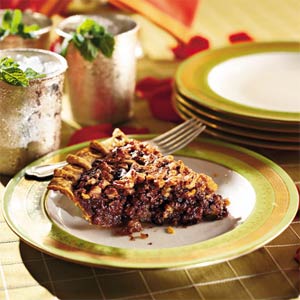 3. In a large bowl, combine eggs, bourbon, vanilla, and salt and mix well. Pour sugar mixture into egg mixture and whisk. Stir in Chocolage chips and pecans. Pour mixture into pie shell.